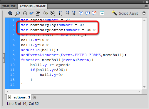 That's awesome! The next thing we should do is get those hard numbers out of the if statement and turned into variables. Let's declare top and bottom boundaries at the start of our script: